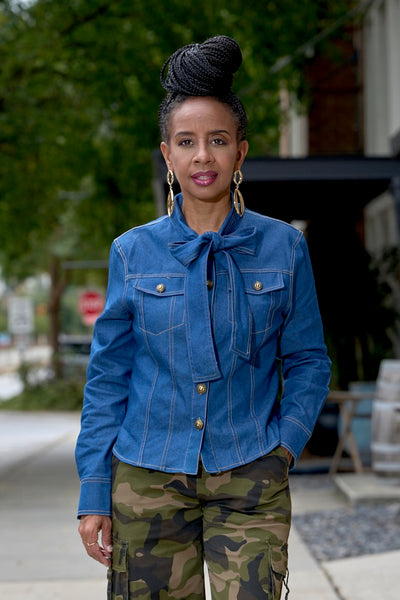 Denim Tie Neck Top