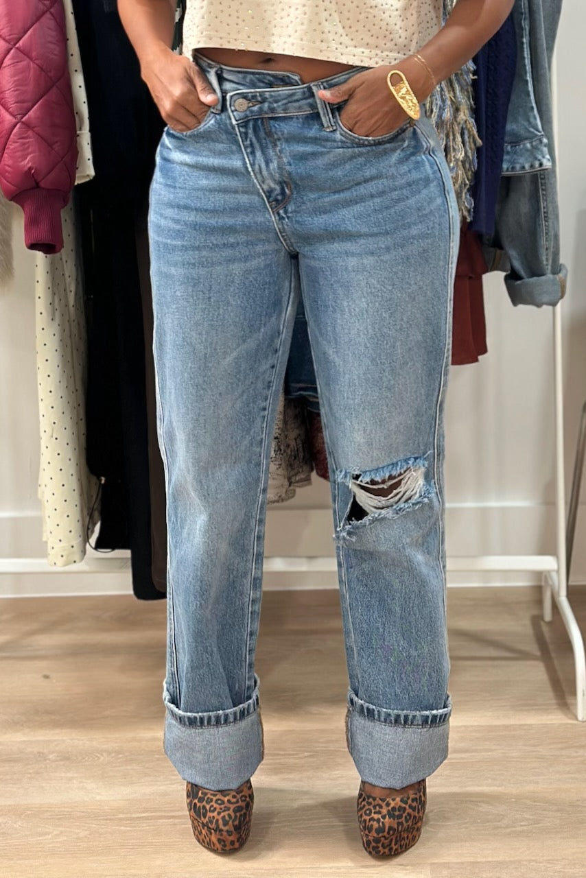 Regular price $ 70.00 Save $ -70.00Cross Waistband Rigid Magic Dad Jeans (A-11244)