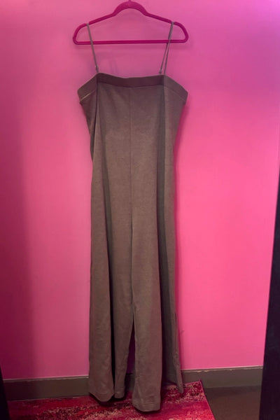 Curvy Cut Out Back Wide Leg Jumpsuit -Mocha