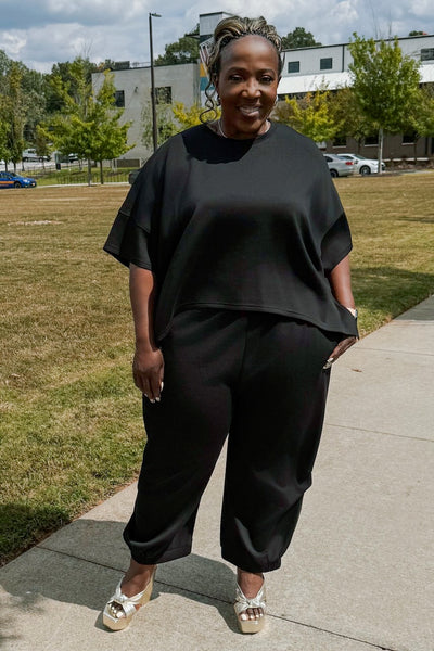 Curvy Boxy Crewneck Top & Pleat Leg Jogger Set -Black