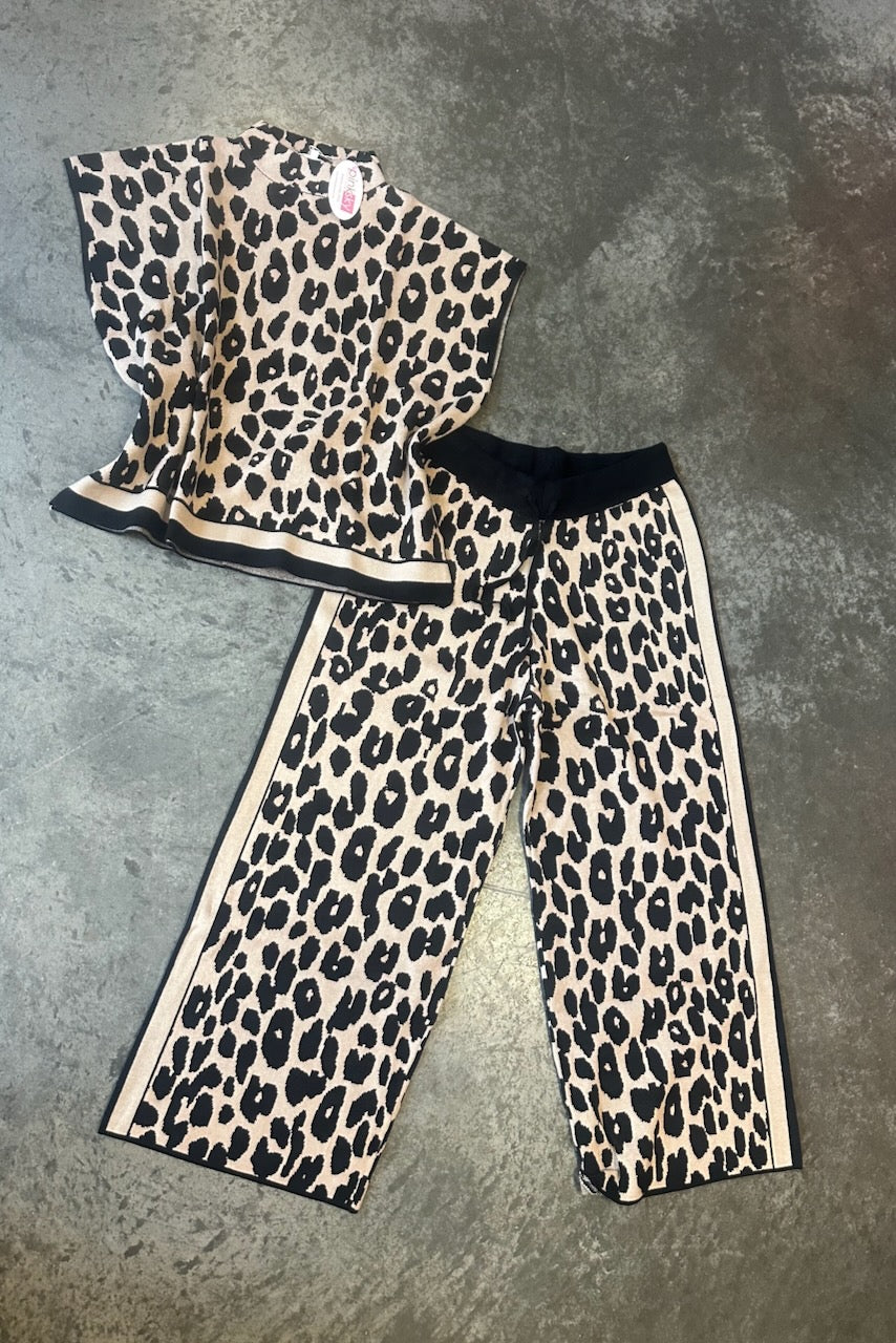 Curvy Knit Leopard Mock Neck Top and Pants Set -Black (A-11565)