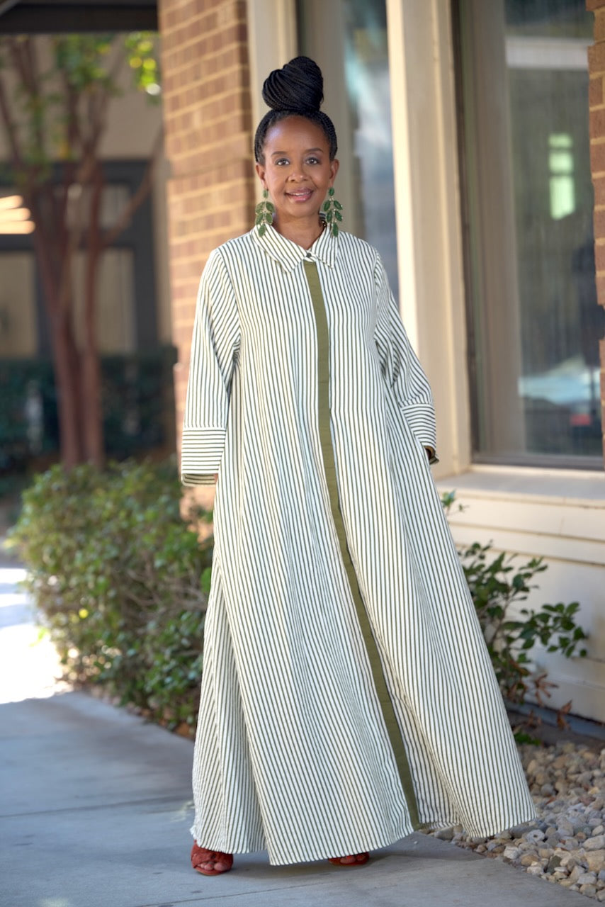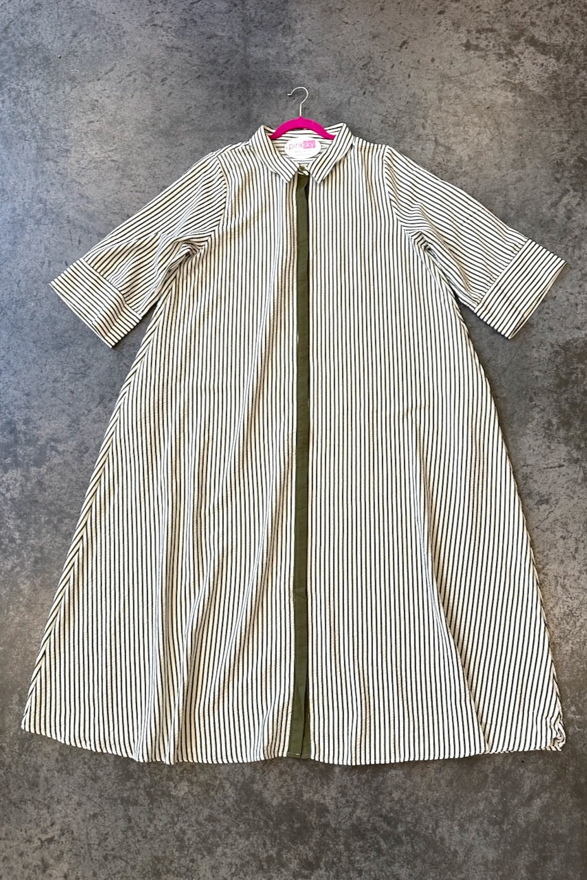 Curvy Striped Collar Button Down Shirt Dress- Olive- FINAL SALE