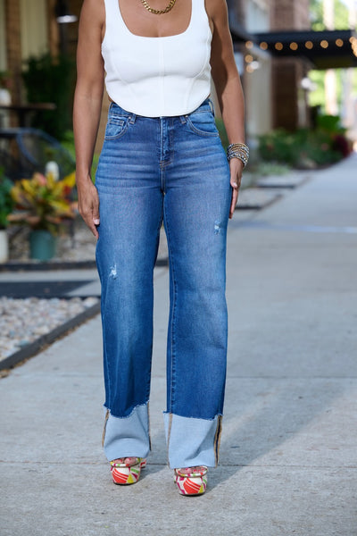 Hi Rise Wide Cuff Wide Leg Jeans