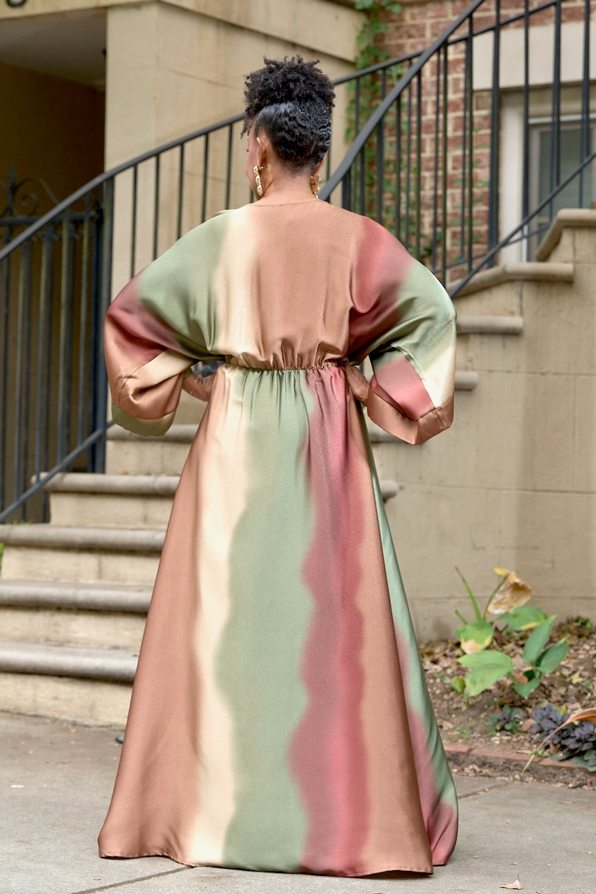 Ombre Satin Split Front Kimono Maxi Dress
