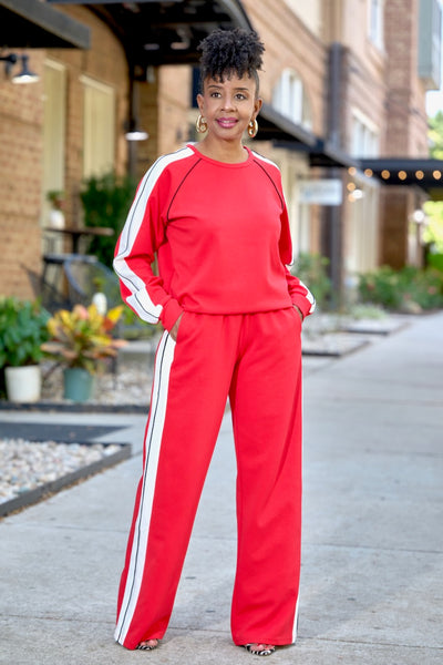 Boxy Crewneck Top & Pleat Leg Jogger Set- Red