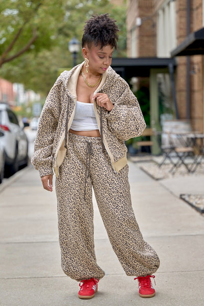 Knit Leopard Mock Neck Top & Pants Set -Tan