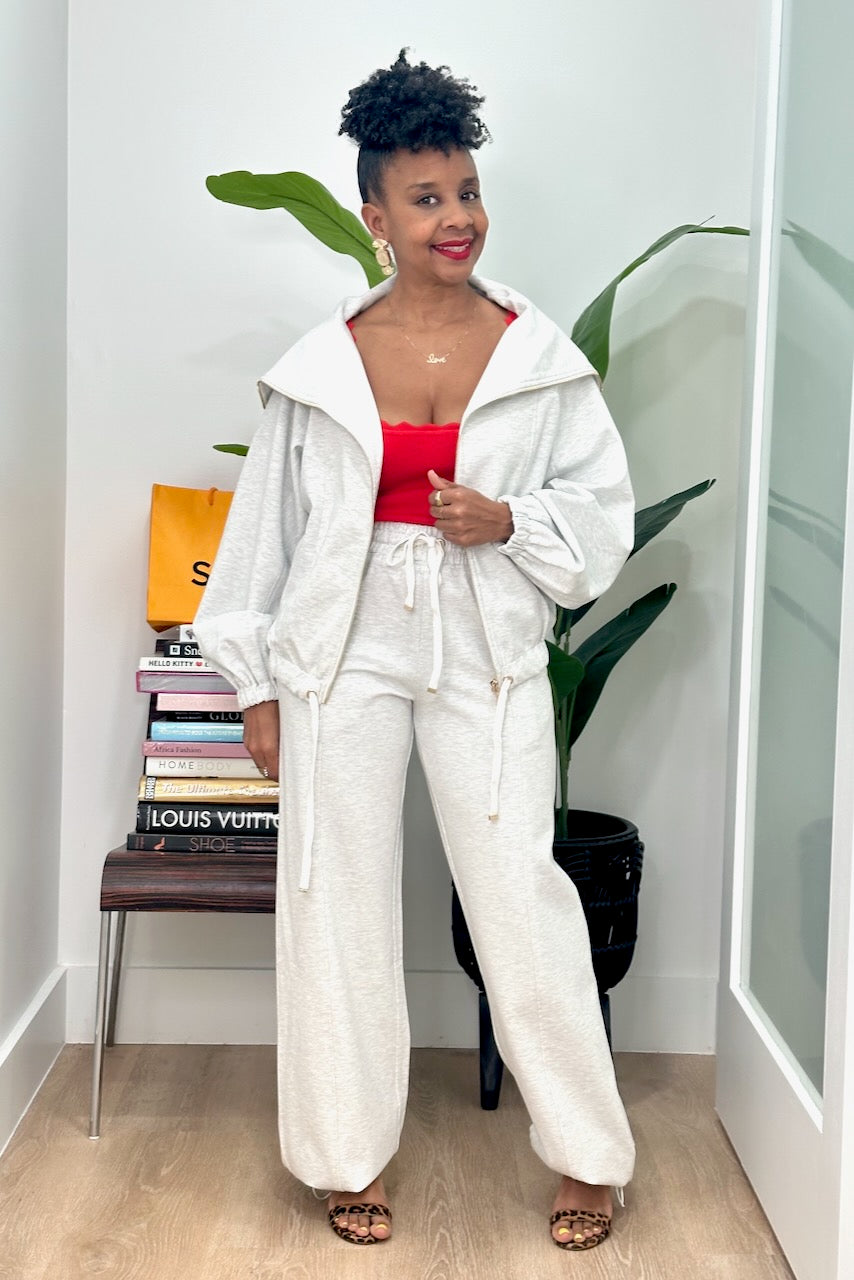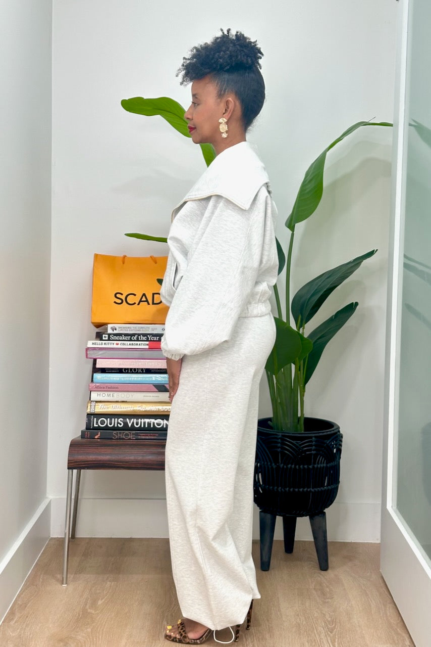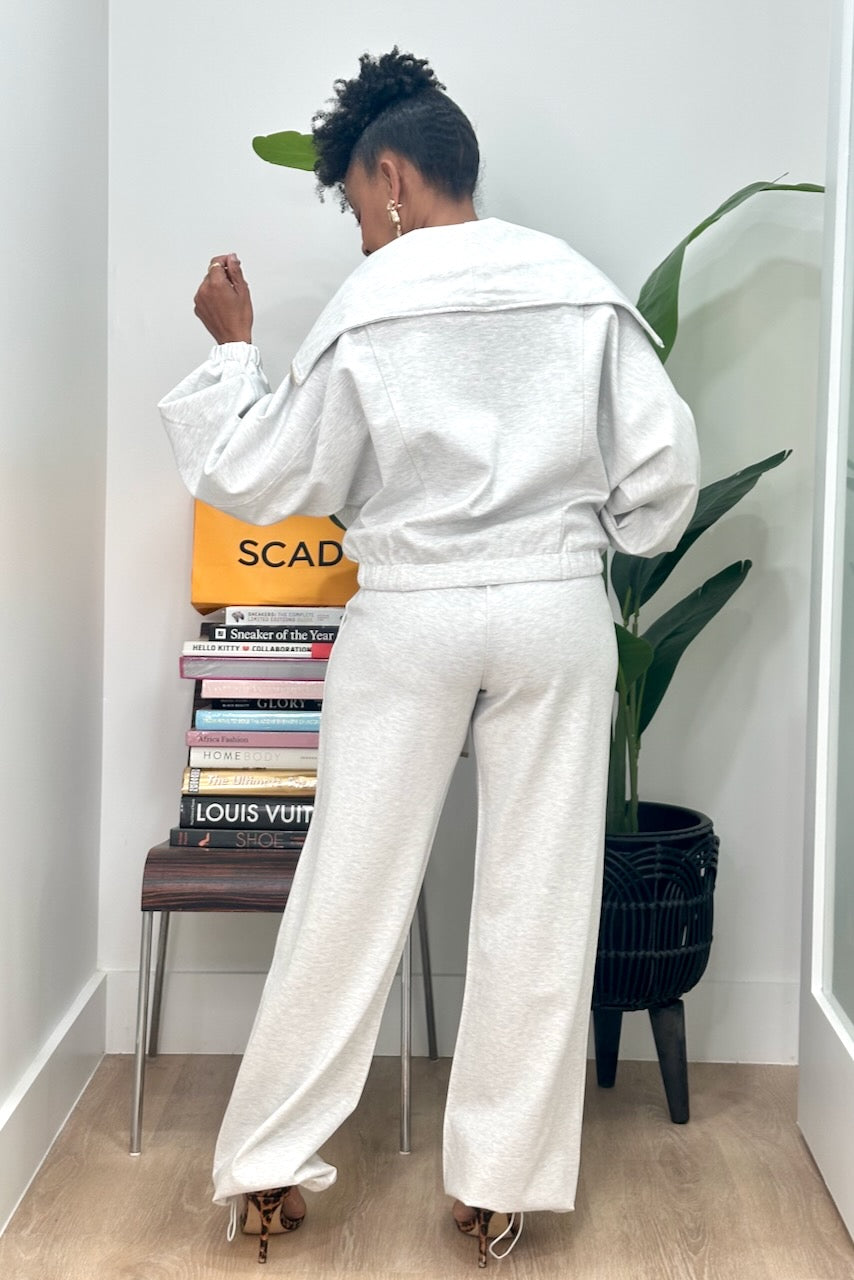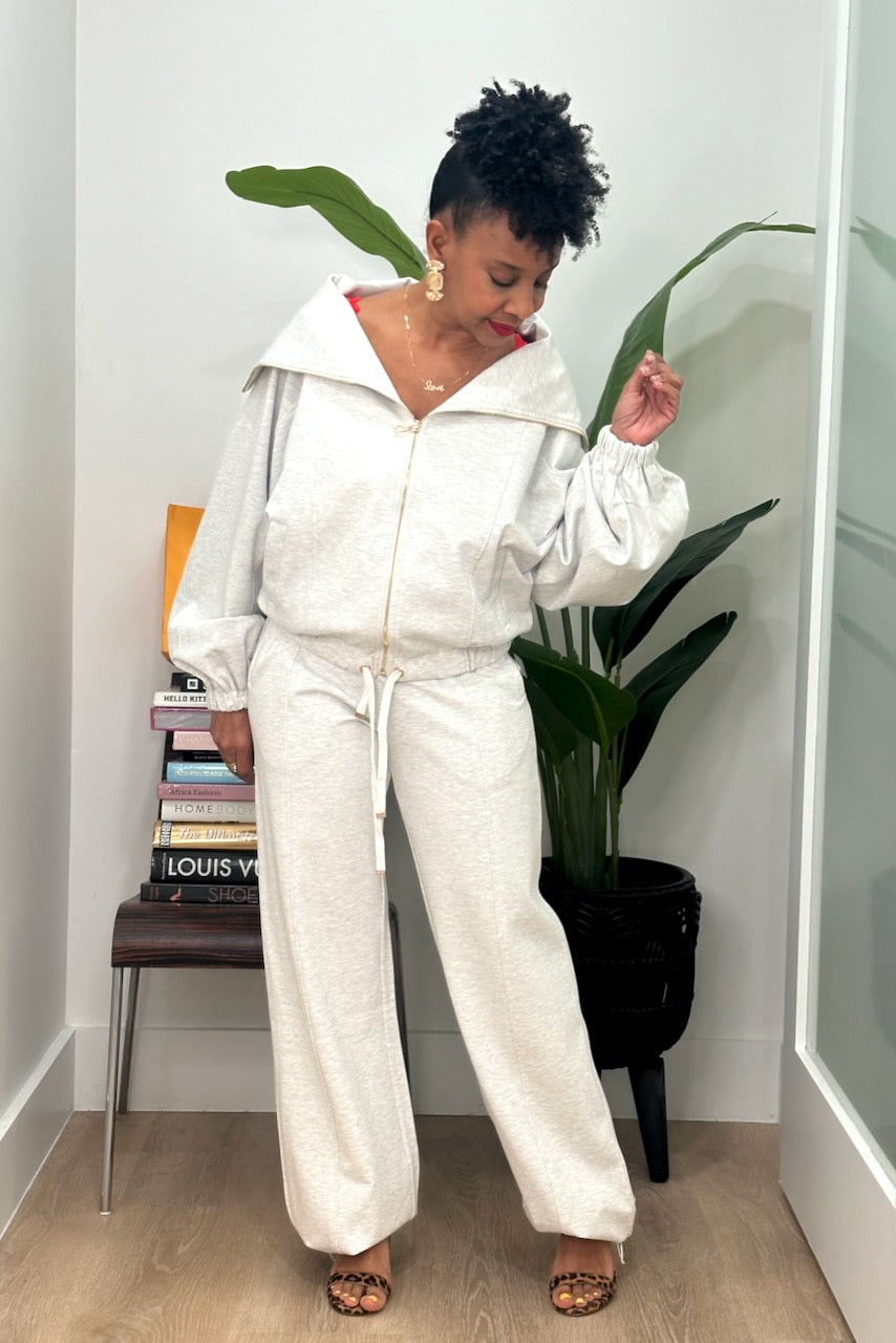 Chic Wide Collar Zip Front Jogger Set (A-11794)