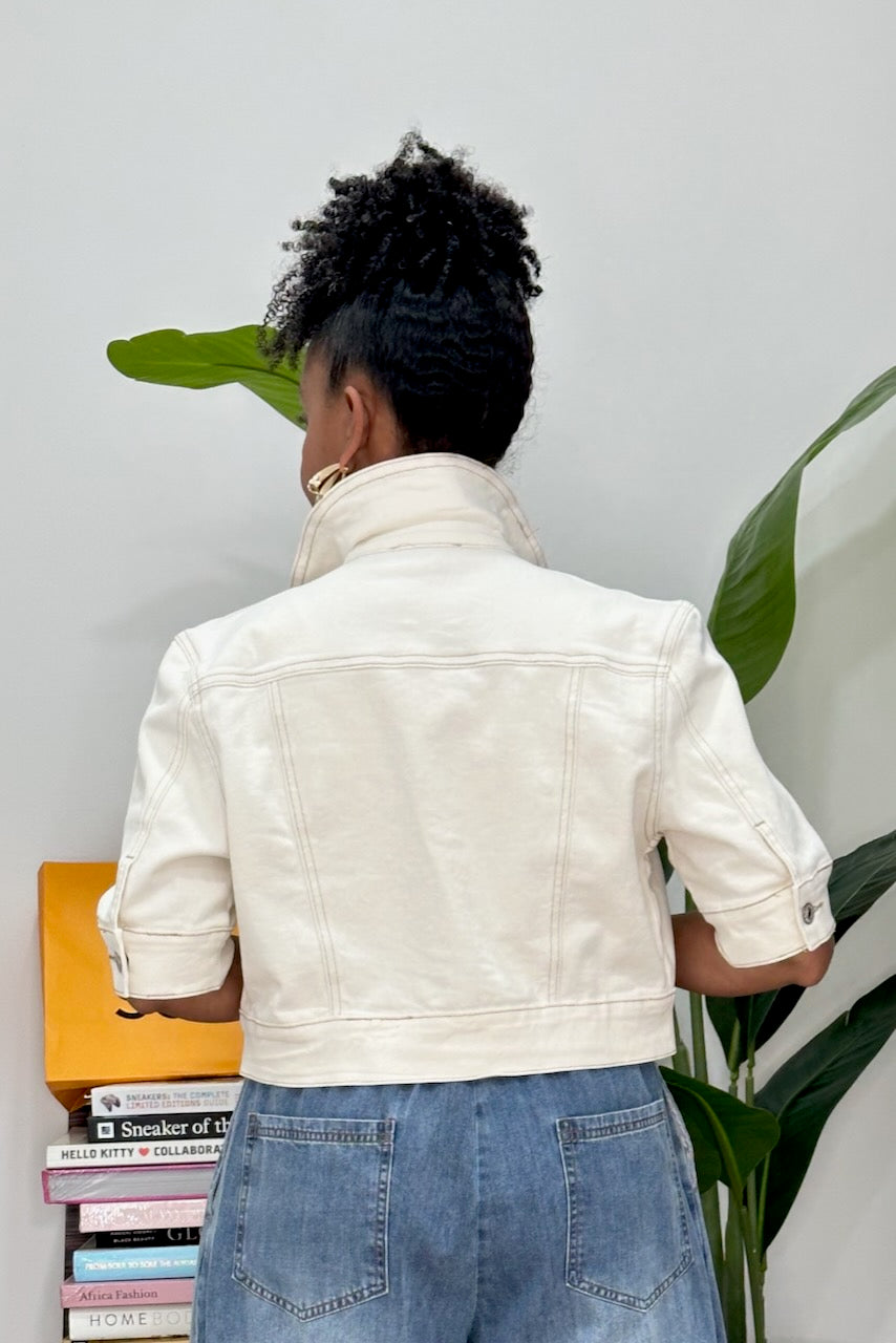 Regular price $ 60.00 Save $ -60.00Cream Cropped Twill Jacket (A-11699)