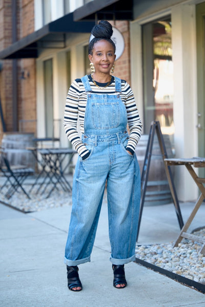Medium Wash Barrel Overalls