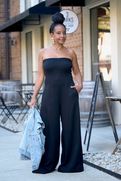 Cutout Back Wide Leg Jumpsuit -Black
