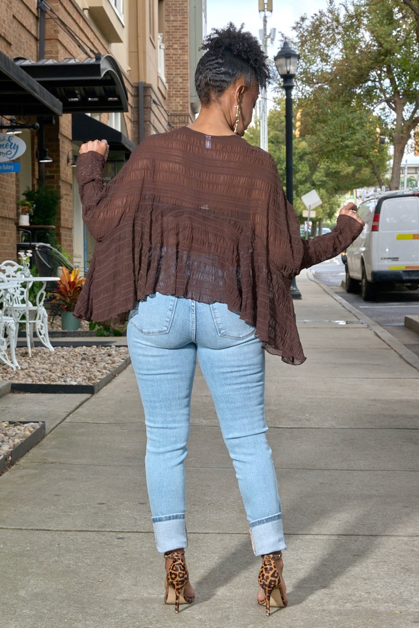 Textured Crop Cape Top -Brown